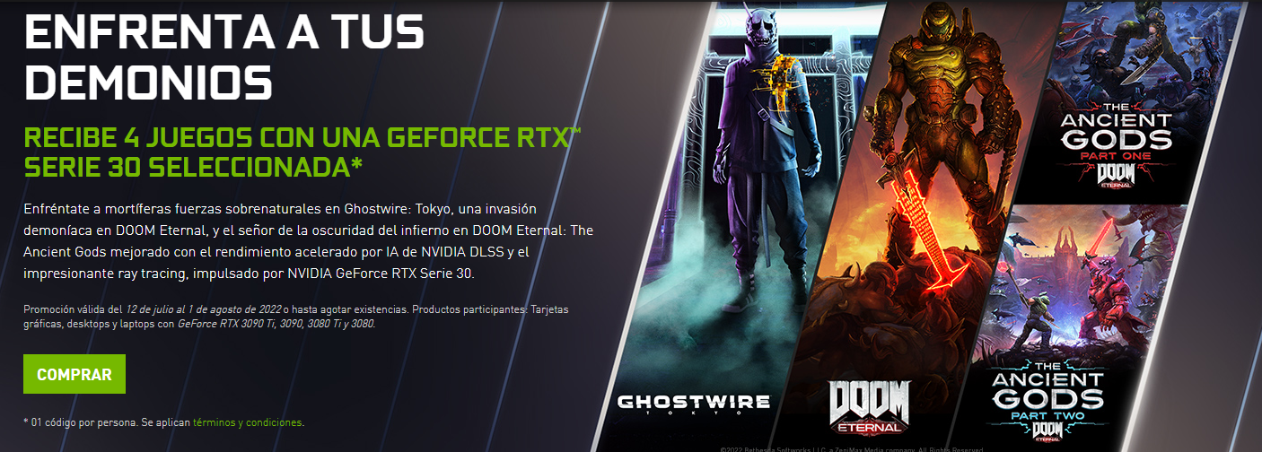¡Nuevo paquete! ¡Compre una GeForce RTX seleccionada, y podrás obtener Ghostwire: Tokyo, DOOM Eternal y más!