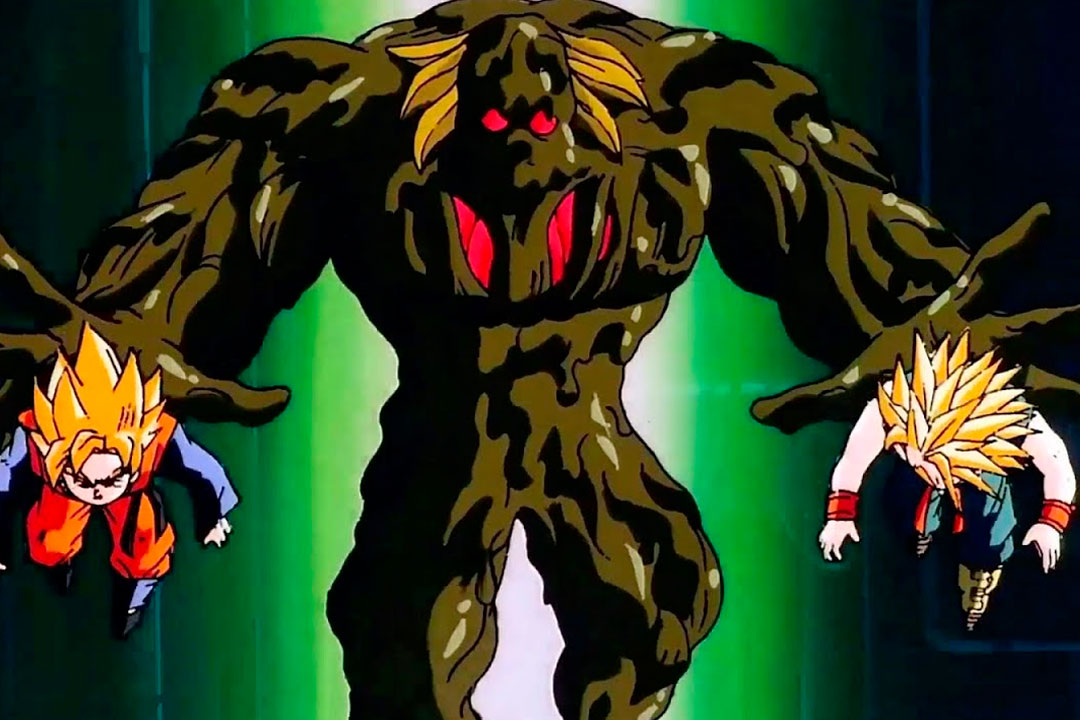 Hasta el momento de la presentación de este nuevo Broly todo podía haber quedado en: «Ok, otra vez van a enfrentarse a Broly, pero esta vez quiero ver cómo lo harán sin tener a Gohan o Gokú«. Las cosas se van completamente al diablo cuando le caen estos restos químicos, convirtiendo a Broly en una masa verde totalmente deforme, con uno de los peores diseños que he visto en Dragon Ball Z.
