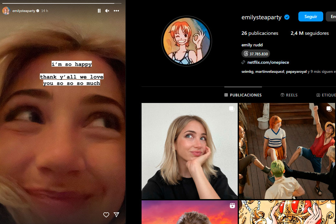 «Dios mio. Gracias, te queremos mucho. El sueño continúa» comentó la intérprete de treinta años, quien está gozando de una increíble popularidad gracias al personaje de Nami. Antes de involucrarse en la adaptación del popular anime, la actriz ha participado en producciones como ‘La calle del terror‘ y ‘Hunters‘.