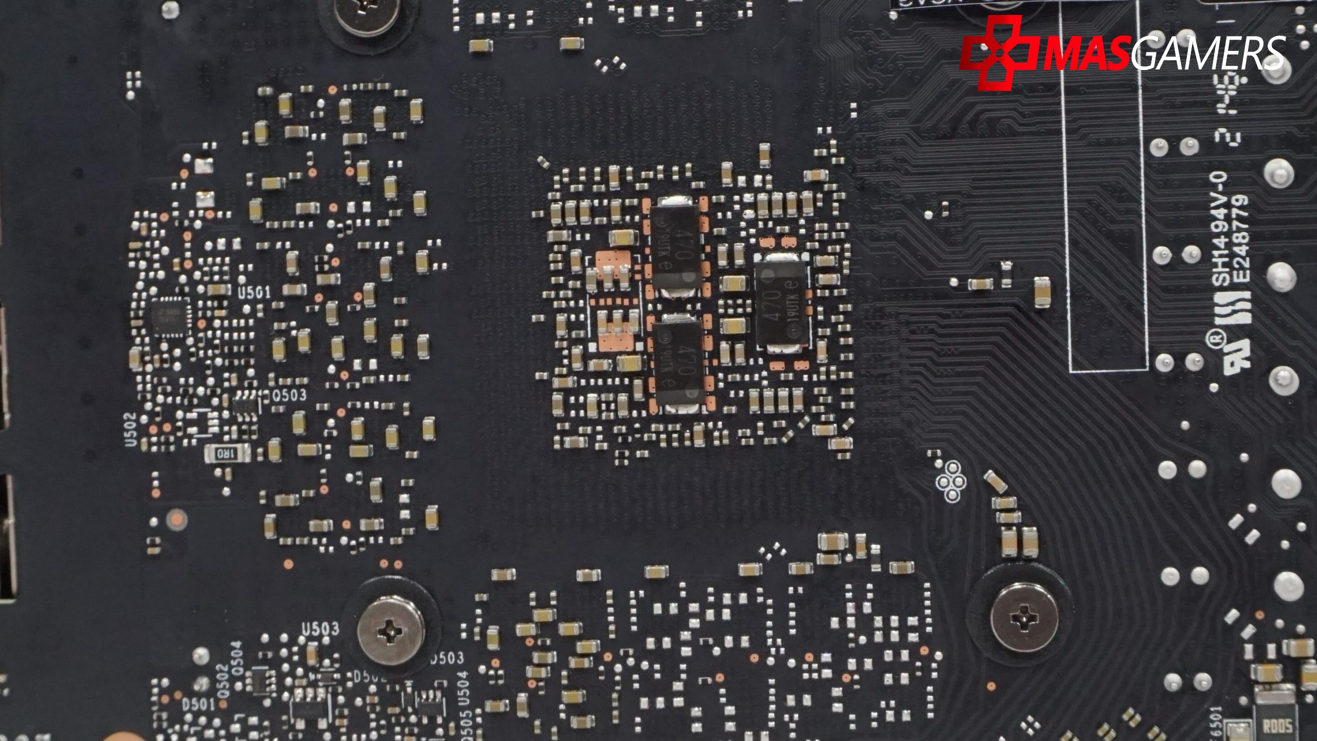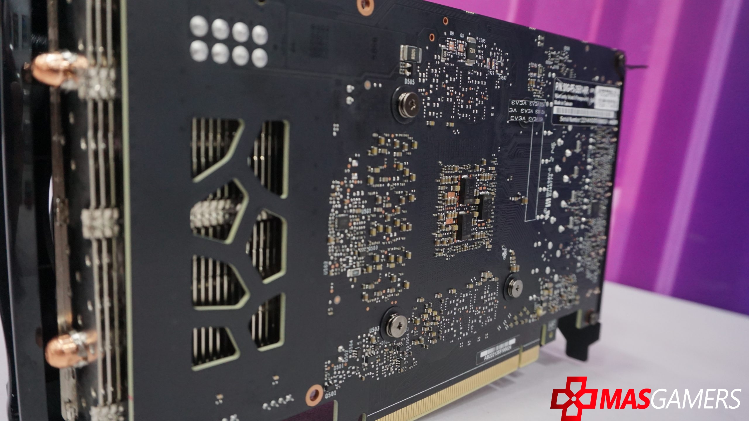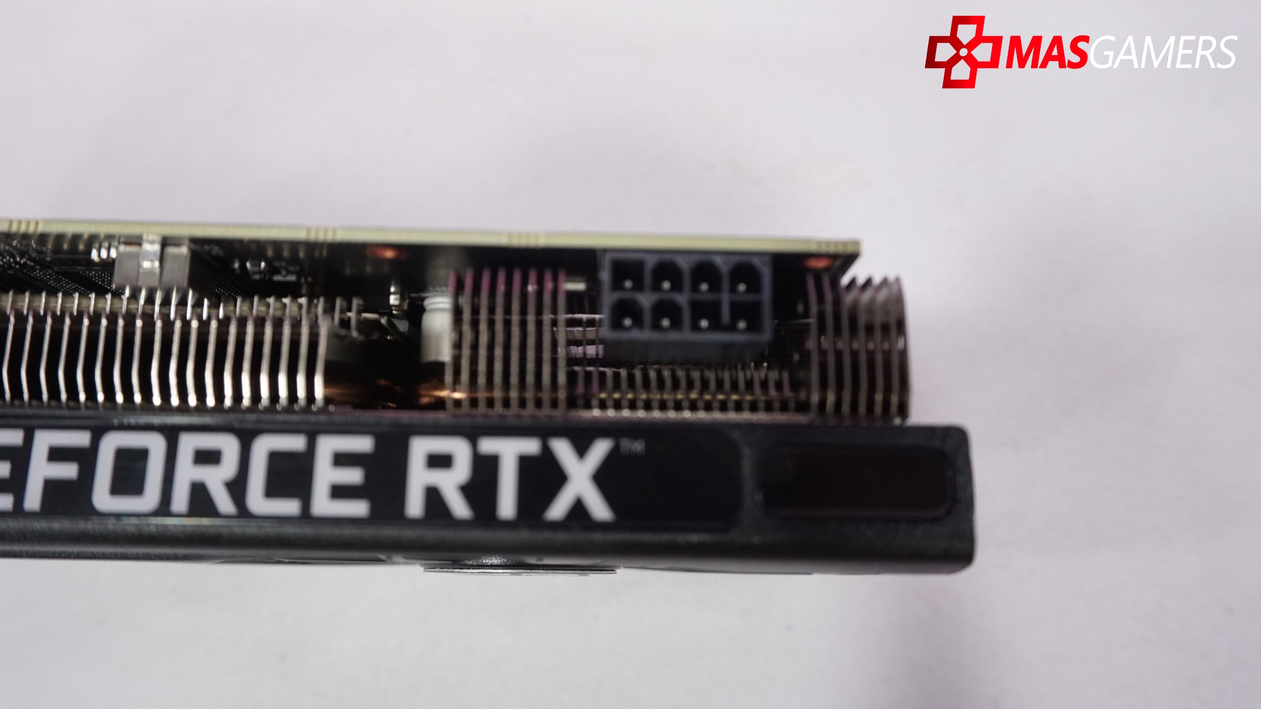 Si nos vamos al backplate nos encontramos con el clásico formato descubierto al que nos tienen acostumbrados, ya que podemos ver toda la línea de circuitos que están presente en la marca. Así como también, en la parte lateral está presente el nuevo paso de aire, que se ha convertido en un estándar dentro del mercado actual de las GPUs.