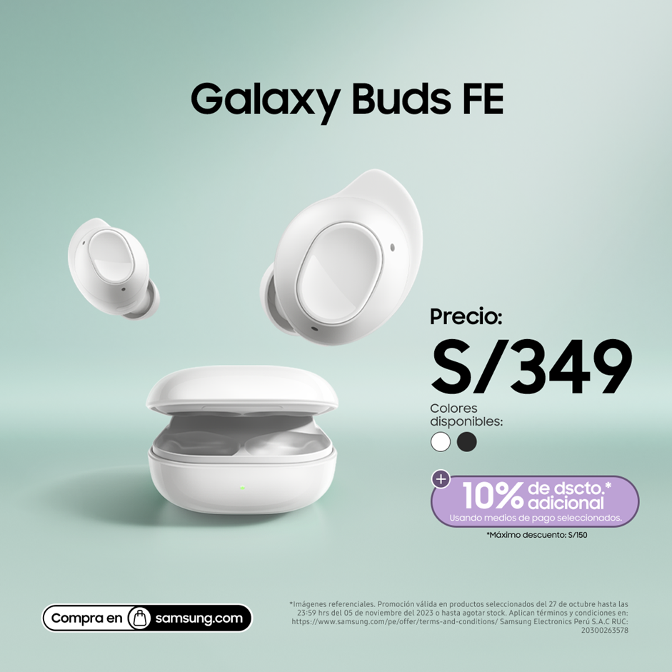 Asimismo, destaca por su larga duración de batería de hasta 30 horas con un diseño cómodo. Los Galaxy Buds FE están disponibles en dos colores: grafito y blanco.