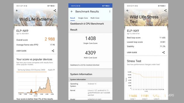 También realizamos diversas pruebas de rendimiento utilizando diferentes benchmarks, que confirmaron la potencia y eficiencia del Honor 200 Pro en múltiples tareas.