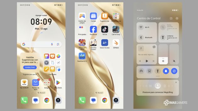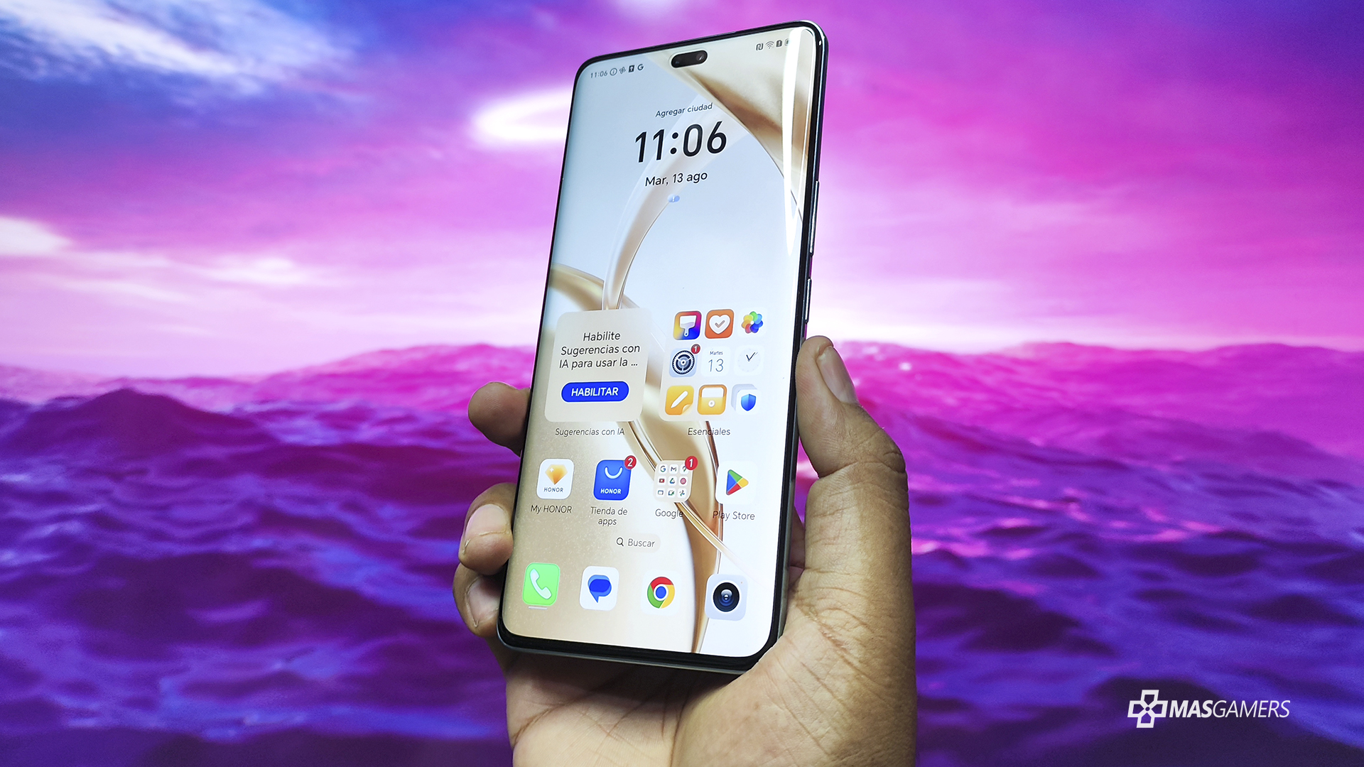 Este dispositivo utiliza el sistema operativo MagicOS 8 basado en Android 14, que ofrece una capa personalizable para el usuario con una experiencia fluida. La interfaz presenta menús armoniosos e íconos minimalistas en colores vibrantes, creando una experiencia visual atractiva.