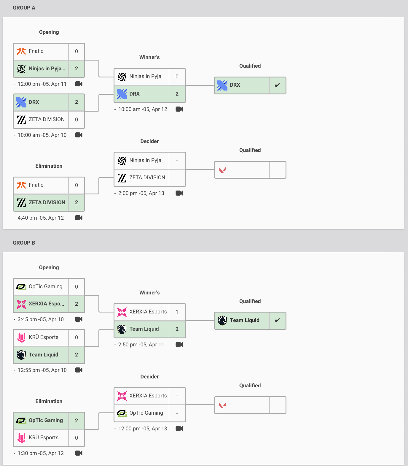 Hasta el momento Team Liquid y DRX son los primeros clasificados a la etapa de PlayOff. La competencia sigue su rumbo y hoy tenemos grandes partidos que darán inicio partir de las 12 de la tarde. Recuerda que puedes seguir estos partidos desde las paginas oficiales de Valorant en Twitch y YouTube.