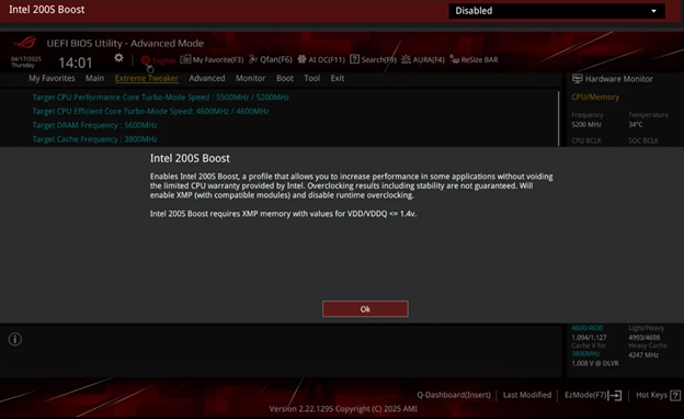 La actualización Intel® 200S Boost permite a los usuarios mejorar el rendimiento del sistema a través de una nueva selección de funciones de overclocking disponibles para procesadores Intel® Core™ Ultra 200S específicos, cuando se utilizan con una placa base ASUS Z890 que ha recibido esta actualización del BIOS.