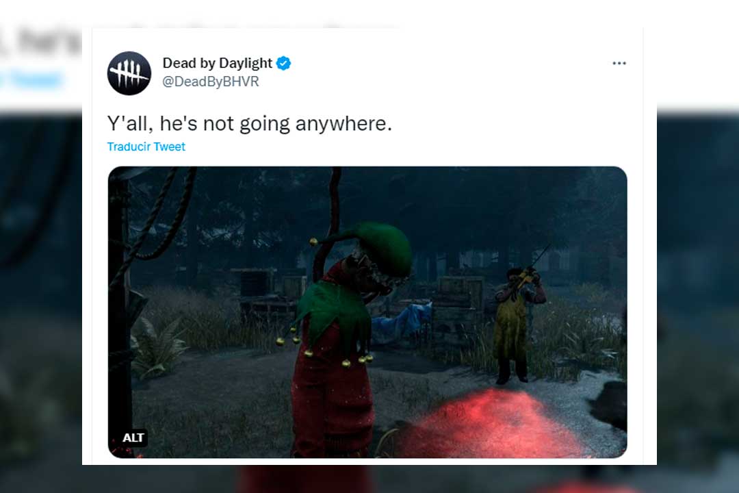 A través de su cuenta de Twitter, la cuenta oficial de Dead by Daylight publicó una imagen donde se ve a uno de los protagonistas del juego a punto de ser atacado por Leatherface. En la descripción se menciona: «Oigan todos, él no se irá a ningún lado«. De esta forma, se pone fin a los reportes de una supuesta salida.