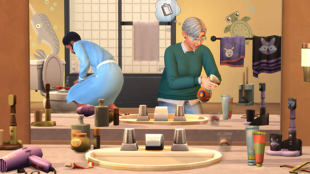 El kit Objetos para el Baño de Los Sims 4 anima a los Sims a aceptar el desorden de la vida diaria. Ya sea que quieras dejar el maquillaje y los peines esparcidos por la mesa o dar a tus Sims algunos cajones adicionales para mantenerlos ordenados, la decisión es tuya con esta colección, que incluye decoración de baño para todas las edades.