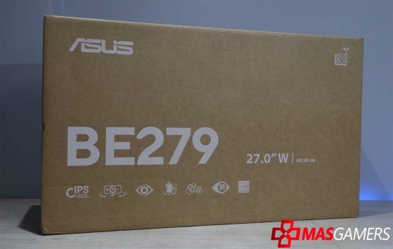 El empaque exterior es el clásico de los monitores ASUS, una caja de cartón con impresión de la imagen del producto y características en color negro. Funcional y simple.