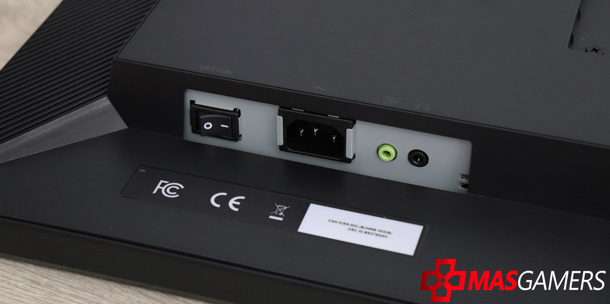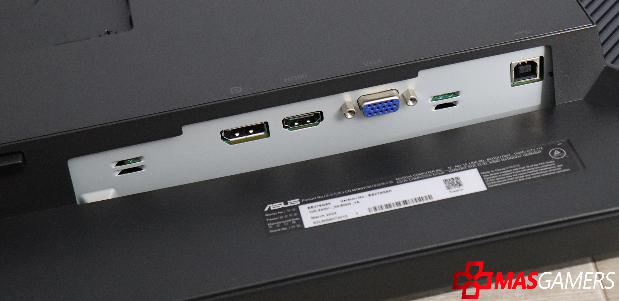 Los puertos están ubicados en la parte trasera inferior del monitor, bien organizados para facilitar las conexiones: