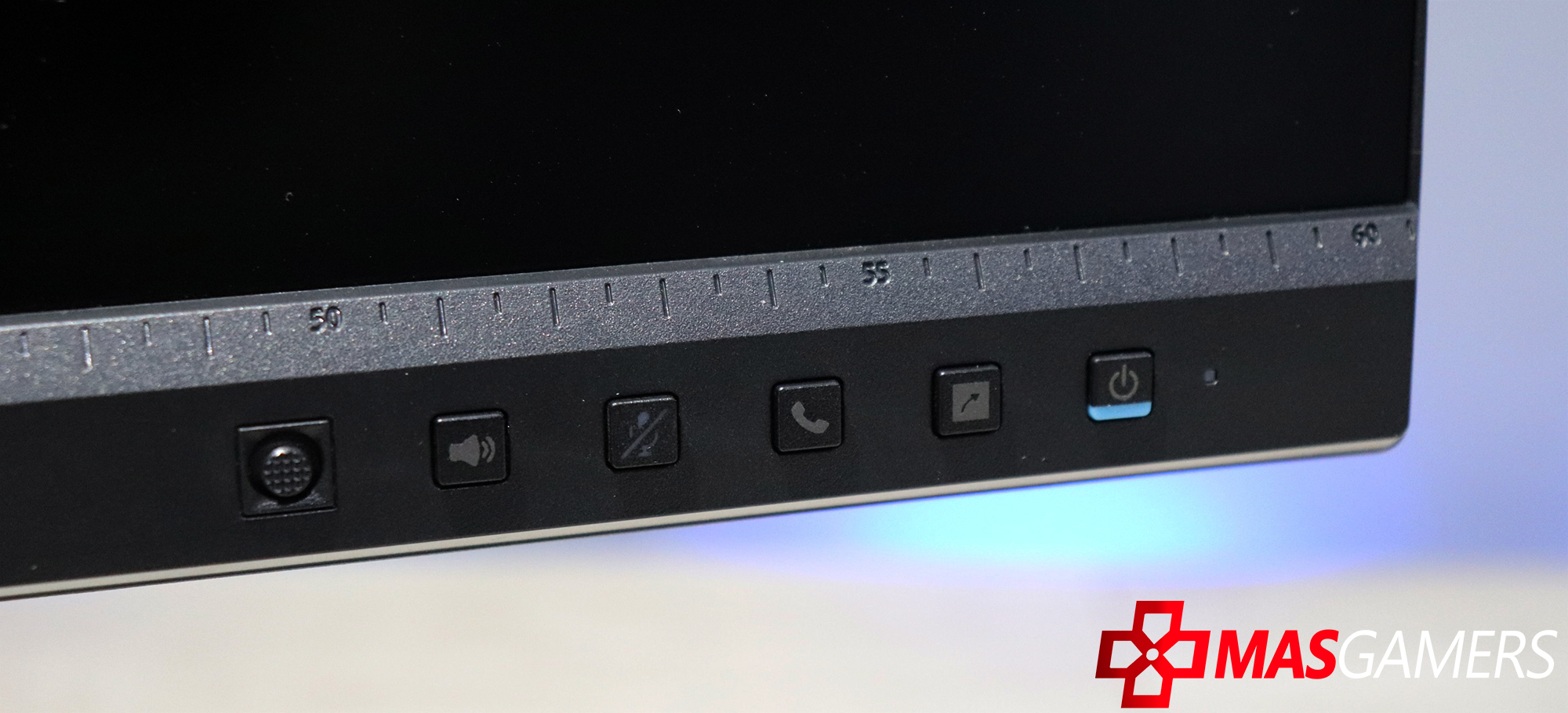 El panel de botones para movernos entre la configuración del monitor lo encontraremos en la parte inferior derecha, el que se compone de 5 botones los cuales nos permitirán no solo realizar las funciones estandar, sino que también podemos contestar llamadas, mutear el micrófono y ajustar el volumen.