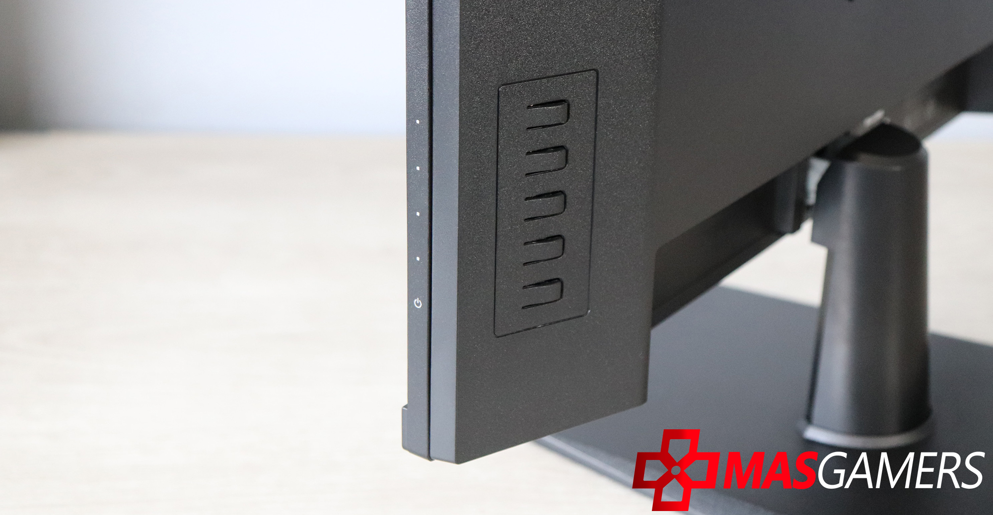 El panel de botones para movernos entre la configuración del monitor lo encontraremos al costado de atrás del lado izquierdo, el que se compone de 5 botones los cuales nos permitirán movernos arriba y abajo, y seleccionar las diferentes opciones con las cuales cuenta este monitor.