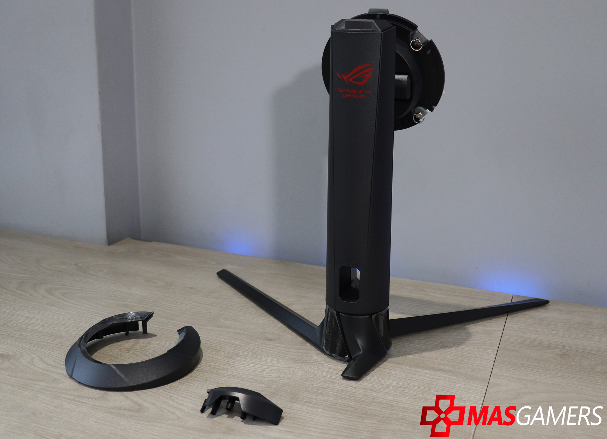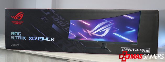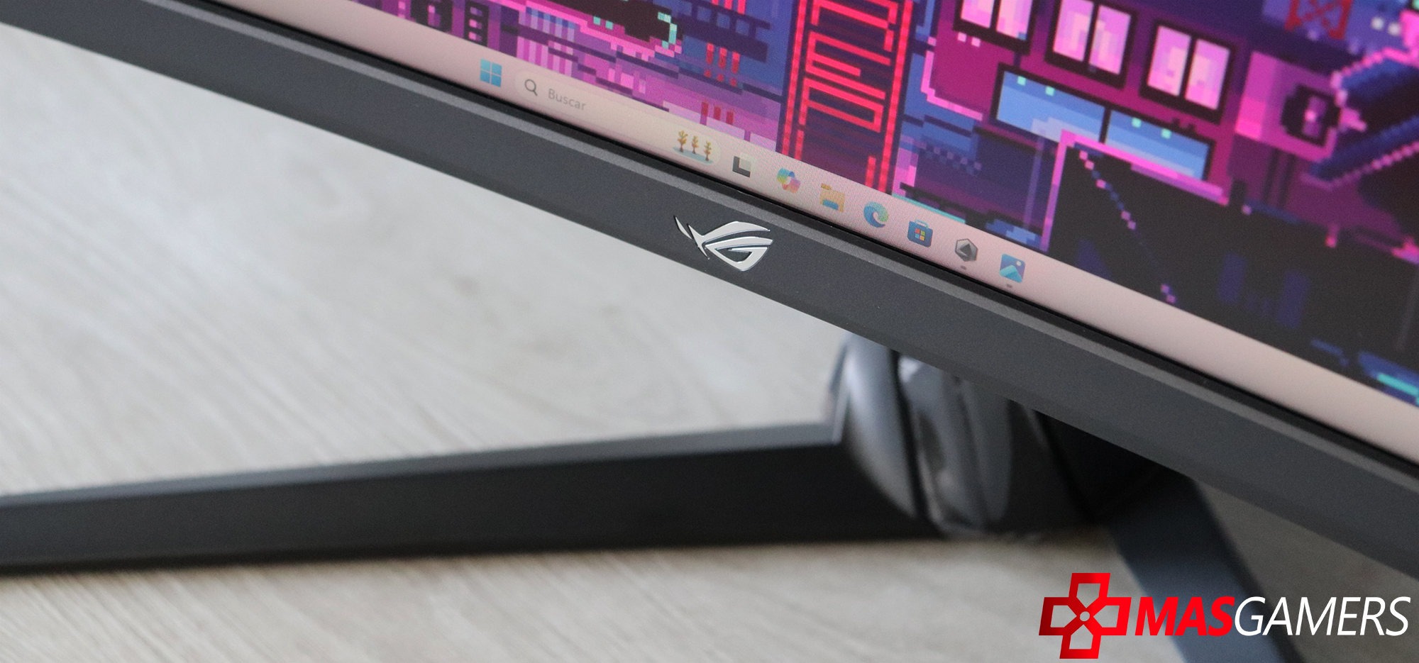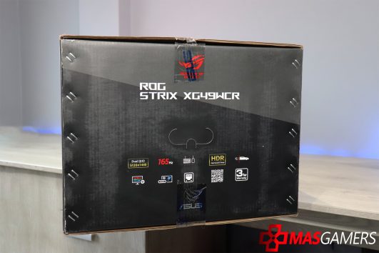 El empaque que protege nuestro monitor es el clásico en esta linea de ROG. Sobrio, con color negro de fondo e imágenes del producto en la parte frontal. Lo que sí, es que el tamaño de la caja es acorde al tamaño del panel.