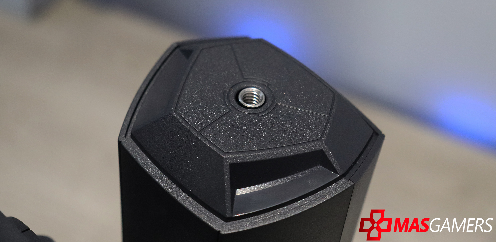 Ubicada en la parte superior de la base, tenemos un pequeño hilo donde podemos atornillar desde una cámara hasta un aro de luz.