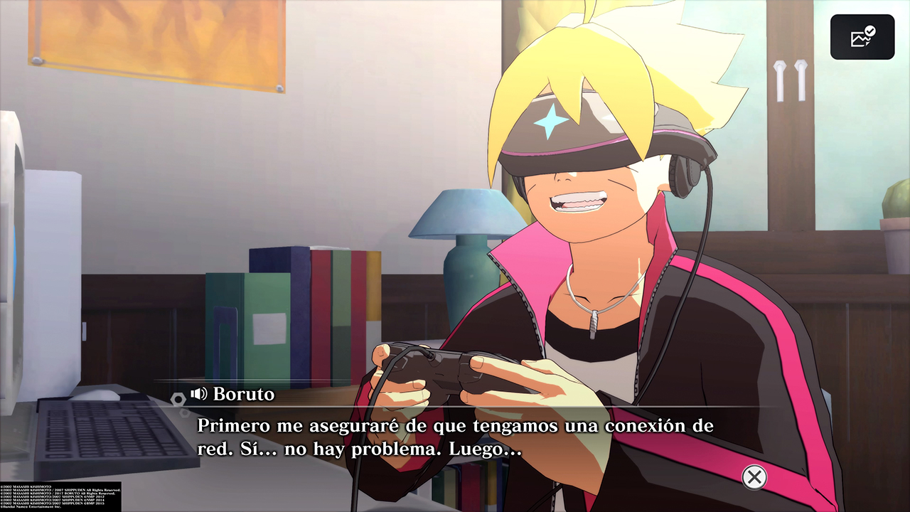 Aparte de ello, tenemos un modo historia especial protagonizado por Boruto creado por el propio Masashi Kishimoto. Por lo menos ahí sí decidieron invertir mejor producción en crear secuencias animadas para contarnos el inicio de una nueva Guerra Ninja, e incluso involucrando momentos tranquilos con Boruto y sus amigos comprando un juego de realidad virtual donde usan avatares basados en los personajes de Naruto. Sí, completamente meta. Me gustó el ritmo que tiene la historia, presentando incluso nuevos personajes. Lástima que dura poco y está ahí para ir probando a cada uno de los luchadores disponibles del juego.