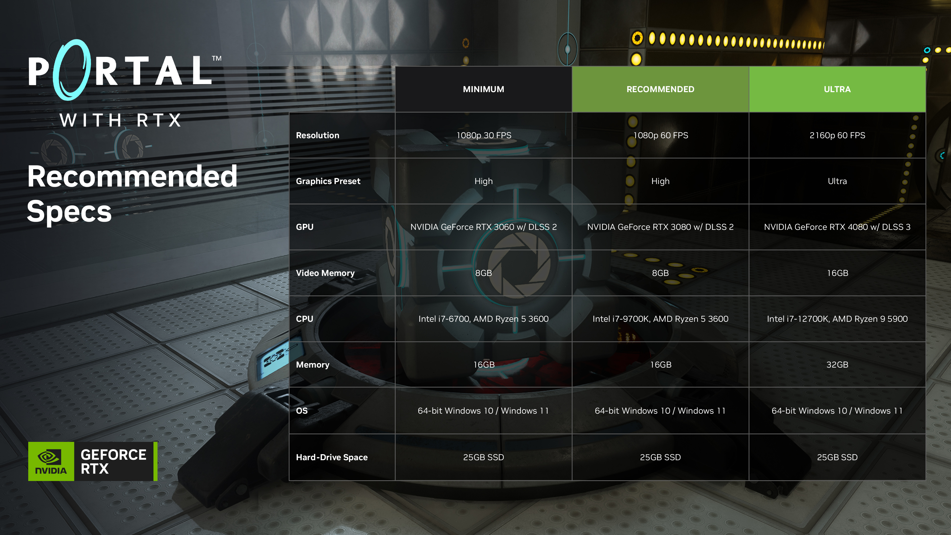 Los jugadores pueden comprobar si su sistema está preparado para Portal con RTX revisando las especificaciones del sistema aquí.