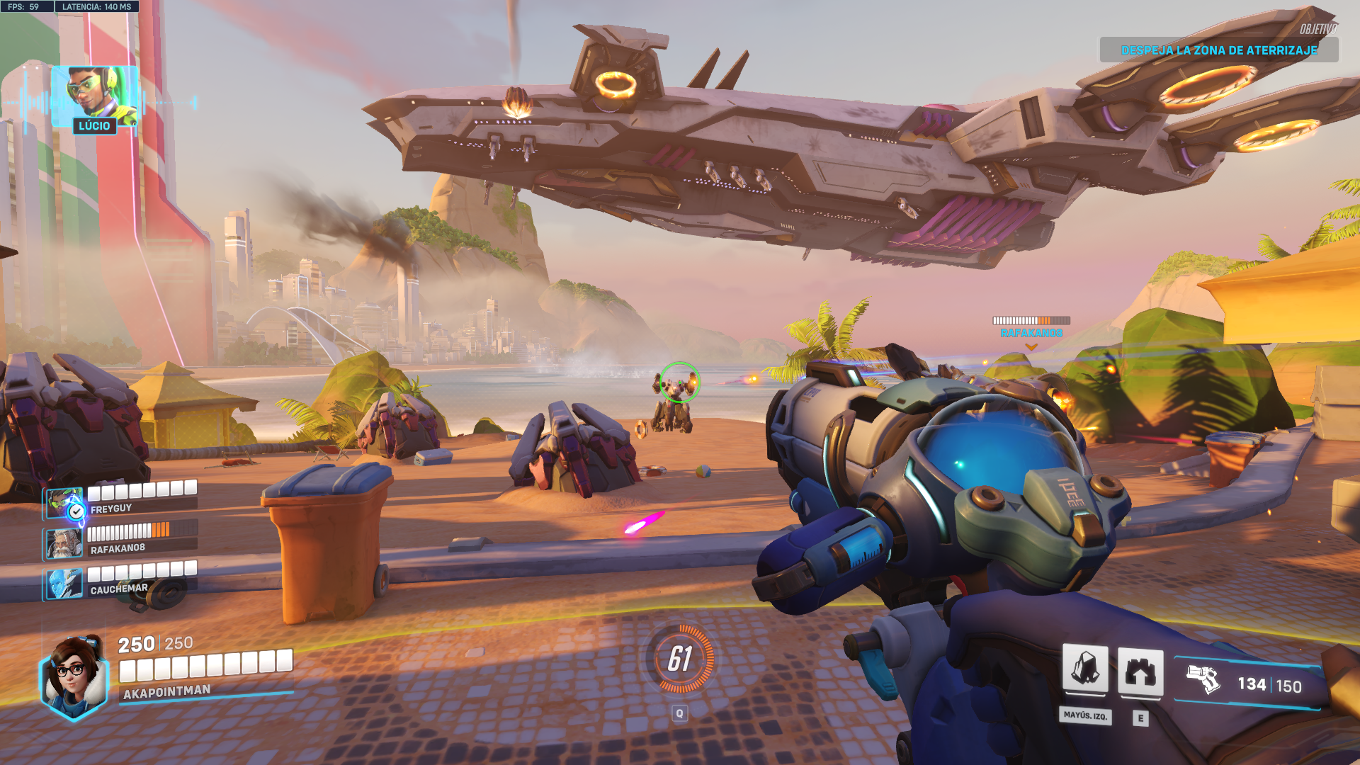 Por otro lado tenemos su arma que puede ir cargándose para lanzar un disparo potente que baja considerablemente la salud de los enemigos. Recuerda bastante a cómo debes esperar a que cargue al máximo la mira de Widowmaker y desplegar un tiro mortal. La cura se realiza con el clic derecho (en la versión para PC) pero debes ir recargando cada cierto tiempo, por lo que debes estar al tanto de quién o quiénes necesitan con urgencia ser curados. Ya sabes que las prioridades muchas veces serán los tanques.