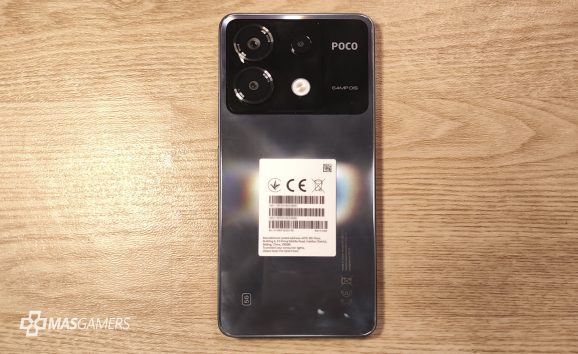 El cuerpo trasero del POCO X6 está hecho de plástico reforzado con una especie de efecto que difumina la luz, y lo hace parece de aluminio, este diseño le da un aspecto atractivo. Aunque el cuerpo es brillante, no tiende a acumular muchas huellas, gracias a la protección Gorilla Glass Victus que ofrece una buena resistencia a caídas. Además, se incluye un protector de goma adicional, una característica habitual en los dispositivos POCO para brindar una protección extra.