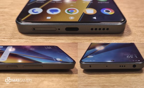 Todos los botones del POCO X6 se encuentran en el lado derecho del dispositivo, incluidos los botones de volumen y el de encendido/bloqueo. En la parte superior, encontramos una de las bocinas y el sensor infrarrojo, así como la entrada de audífonos, mientras que en el lado inferior está la bandeja para la tarjeta SIM, además se encuentran la otra bocina y el puerto USB-C.