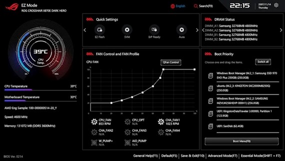 Una vez que tu ordenador esté en funcionamiento, podrás ponerlo a punto de forma rápida y sencilla. Estamos implementando una nueva interfaz «EZ Mode» para nuestro galardonado UEFI, que destaca en primer plano la información de supervisión fácil de leer y las funciones más utilizadas. El Modo EZ es ahora una interfaz única para las funciones UEFI que utiliza la mayoría de nuestros usuarios. Para facilitar la configuración inicial, también hemos incluido el Modo Esencial. En esta página, los usuarios podrán ver información clave del sistema y acceder a las funciones de overclocking más utilizadas, todo ello sin tener que rebuscar en menús que a menudo requieren más conocimientos técnicos. Si necesitas un control más detallado, el Modo Avanzado sigue estando disponible.