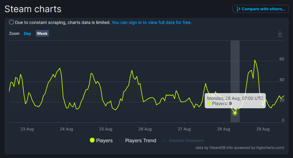 Aunque los esfuerzos de Arkane por mejorar la experiencia de Redfall siguen presentes, el apoyo de los jugadores no ha aumentado en absoluto. De acuerdo a SteamDB, se registró un promedio de 20 usuarios a lo largo de este día. Sin embargo, el 28 de agosto, tuvo uno de sus peores días cuando solamente hubo 09 personas activas.