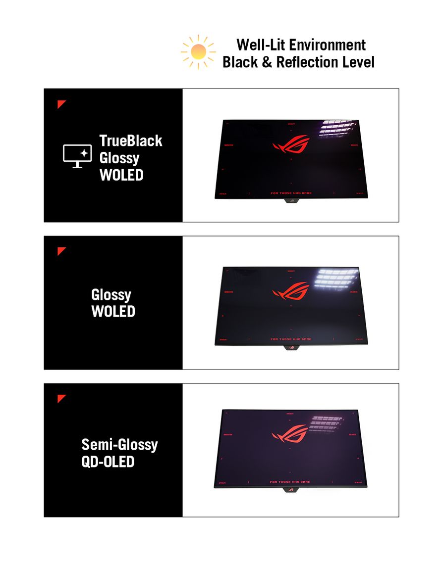 La superficie TrueBlack Glossy, desarrollada exclusivamente por ROG, combina una capa óptica sin neblina con un apilado antirreflejo avanzado, reduciendo en un 38% los reflejos en comparación con paneles WOLED brillantes de generaciones anteriores. Esto permite mantener tonos negros intensos incluso bajo iluminación fluorescente o focos de estudio, y reduce la fatiga visual tras largos periodos de uso. El algoritmo ASUS Clear Pixel Edge elimina los bordes verdosos o rojizos en texto y líneas finas, mejorando la visualización de hojas de cálculo, líneas de código y timelines creativos.