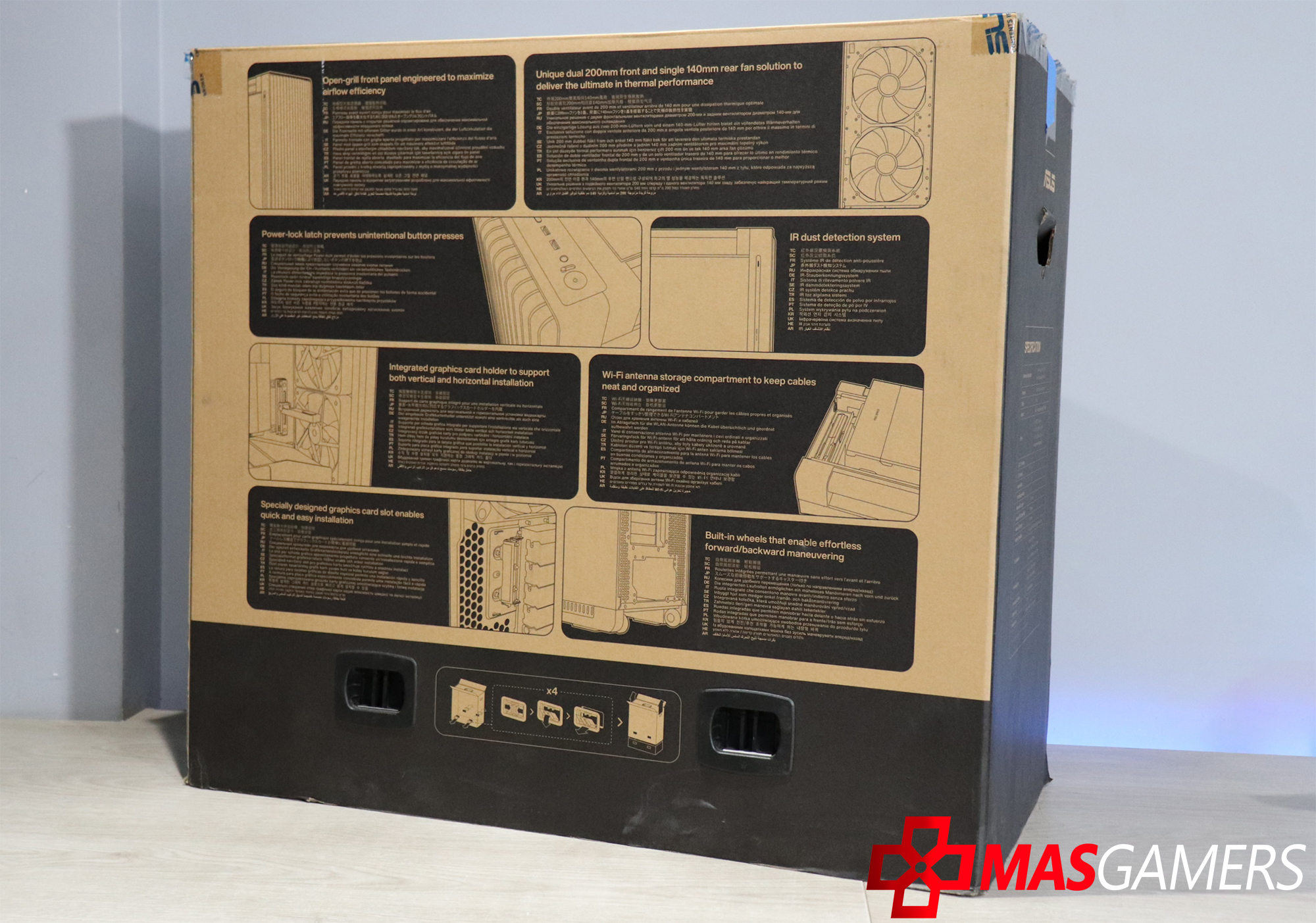 Aquí les dejo un resumen de las especificaciones del case. Para más información les dejo el enlace a la página web de Asus.