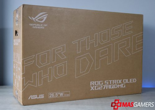 Al comenzar a desempaquetar el ROG Strix OLED XG27AQDMG, lo primero que llama la atención es su empaque robusto y bien pensado para protección y sostenibilidad. El monitor llega dentro de una caja de cartón resistente hecha de material 100 % reciclado, reflejando el compromiso de ASUS con el medio ambiente sin sacrificar seguridad en el transporte.