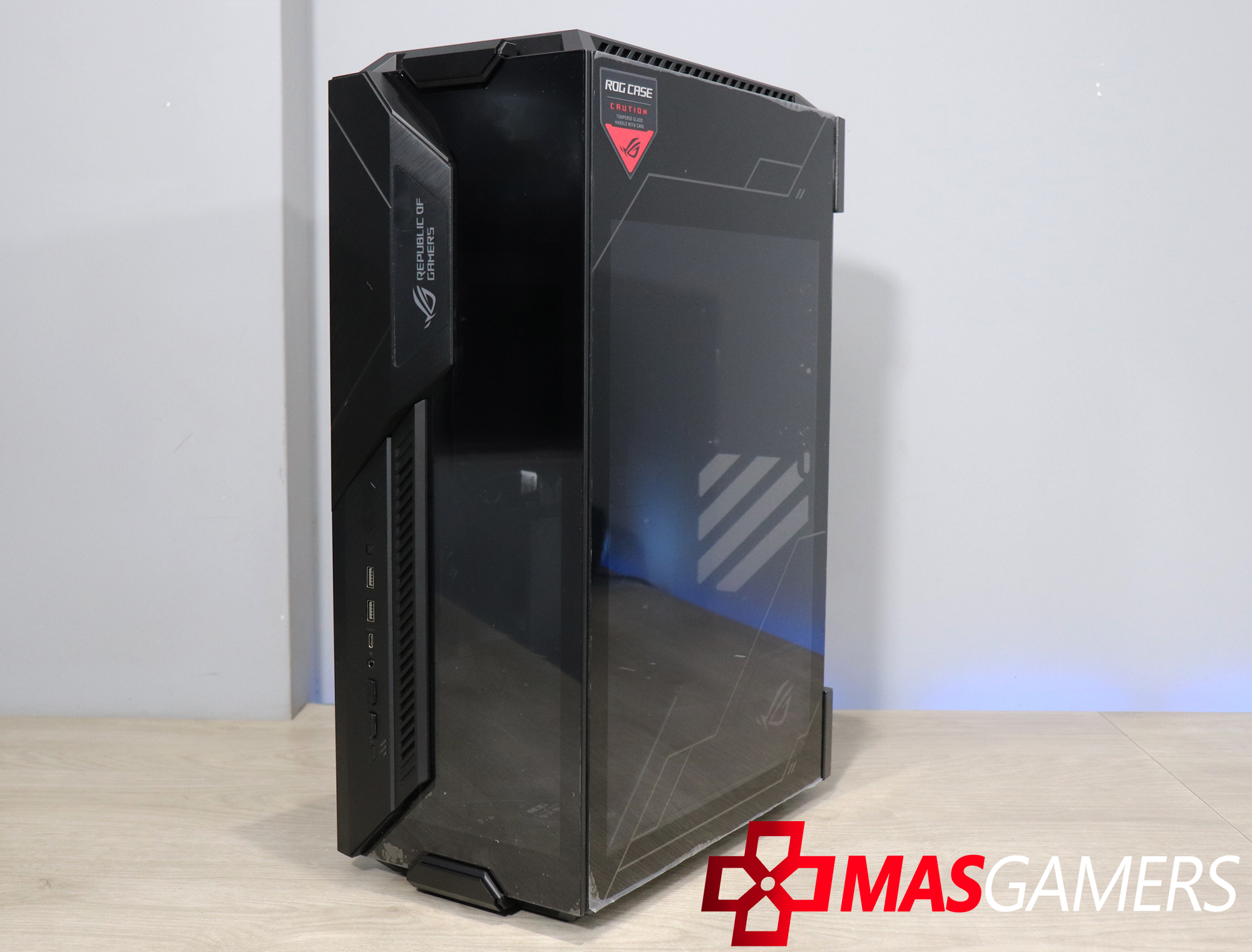 A primera vista lo que nos llama la atención es su diseño con grandes paneles de vidrio templado y el logo de ROG en distintas posiciones. Pero sobre todo lo que predomina es un diseño agresivo y con el color negro de fondo.