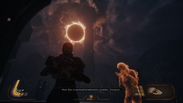 Saros nos lleva a un grupo de exploradores que llega al planeta Carcosa, un entorno hostil cuya principal característica es que cambia constantemente en cada visita. Nuestro protagonista, Arjun, tiene la misión de investigar la desaparición de su tripulación, pero en el proceso también se enfrenta a un conflicto personal que lo llevará a cuestionar su propio propósito, todo bajo la influencia de un misterioso eclipse permanente.