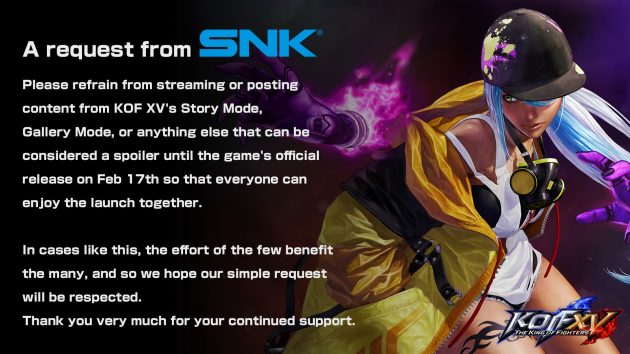 Luego de años de espera y algunos retrasos, estamos a puertas del lanzamiento de la décimo quinta entrega de The King of Fighters. Al parecer, ya no existe algún problema e impedimento para evitar dicho lanzamiento y por esta razón Snk, hizo un llamado a todos sus jugadores.