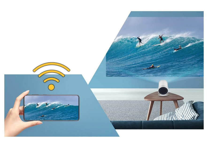 Vive cada momento con una calidad de imagen brillante gracias su proyección en Full HD de hasta a 100” y eleva la experiencia con su potente altavoz de 360 grados, para que puedas disfrutar de su sistema de audio envolvente desde cualquier lugar donde estés sentado.