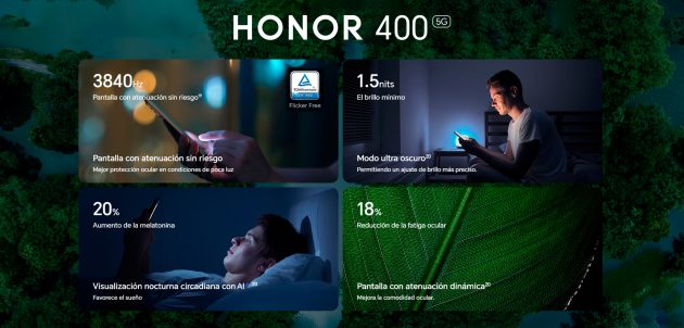 Además, el HONOR 400 incluye otras herramientas avanzadas para proteger la vista: