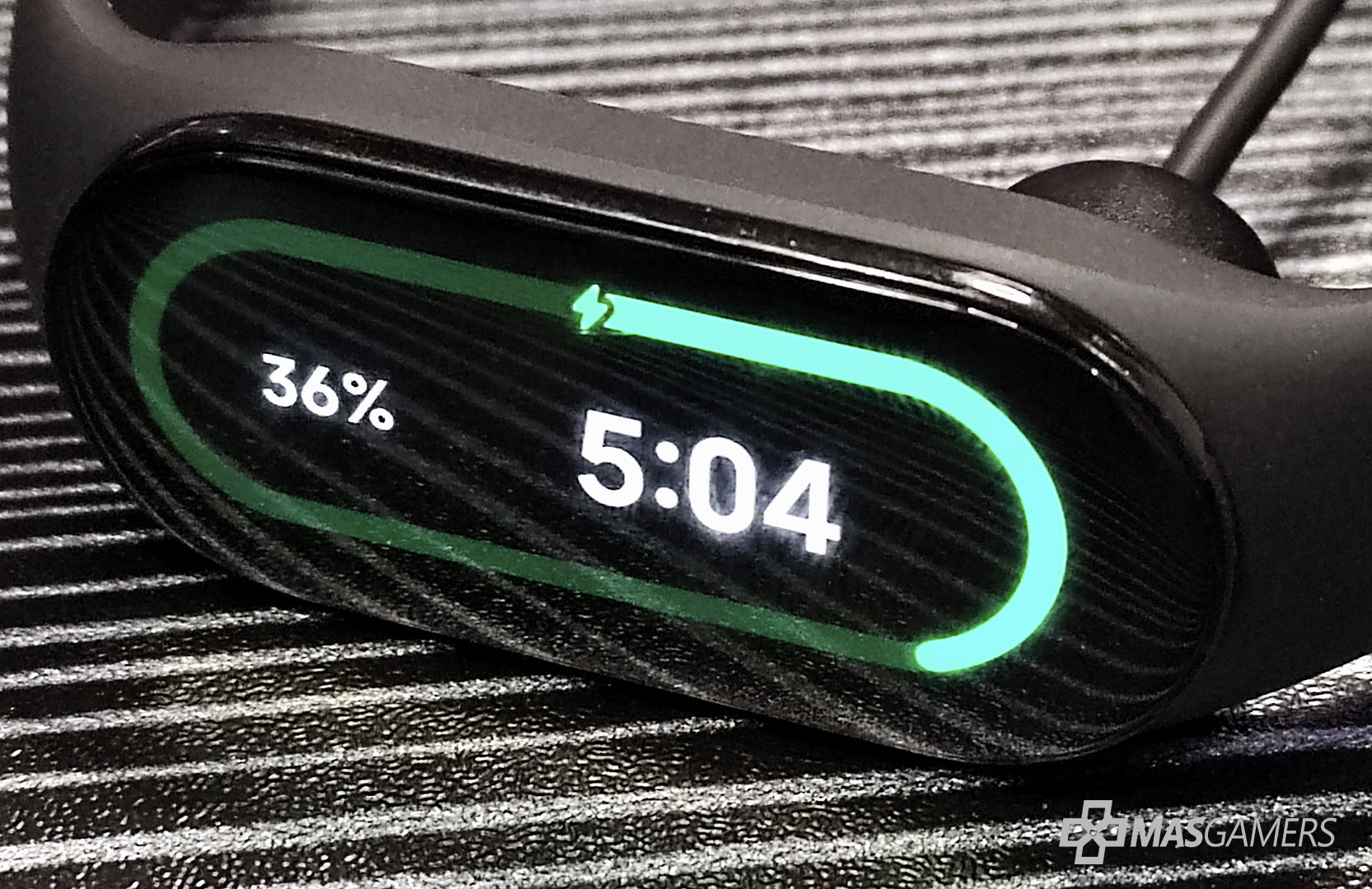 Su cargador no tiene un presentación algo amistosa, pues deberemos de acomodarlo bien para que pueda cargar, esté ira sobre la parta baja de la band, y quedará algo suspendida al conectarse, esto lo decimos en comparación a otros modelos que tiene una base para que repose y cargue el equipo. Otro detalle es que lamentablemente no contaremos con carga inalámbrica, sin embargo tener una batería que dure 14 días justifica bastante.